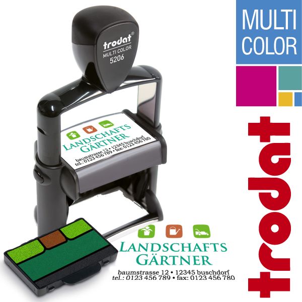 Ogni singola area del timbro autoinchiostrante, ad esempio della Trodat, si presenta come uno stampo a colori in una tonalità diversa. A tal fine sono state create le linee Multicolor. Il design del colore flessibile è il fiore all'occhiello della collezione di timbri, che ha guadagnato una reputazione in una vasta gamma di tonalità.